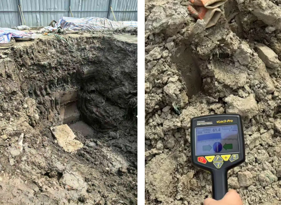 此次探测的目标电缆位于靠近围墙的绿化带下方,其向东100米处是一个施工现场。由于施工现场的特殊性,电缆在此处埋深较深,井中存在3、4根电缆,且深度逐渐加深,客户要在复杂的施工现场精准定位到目标电缆且要避免挖断,这无疑增加了信号干扰的可能性,对探测设备的抗干扰能力和精准度提出了更高要求。